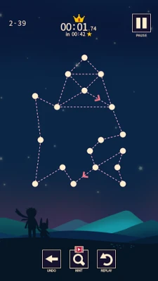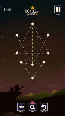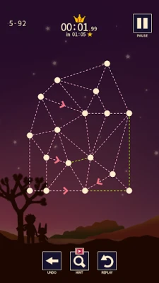 ในโลกแห่งปริศนาของเกมนี้ ภารกิจของคุณคือการเชื่อมต่อจุดต่างๆ ให้เป็นรูปร่างที่สมบูรณ์ภายในครั้งเดียว โดยไม่ยกนิ้วออกจากหน้าจอ ทุกด่านนำเสนอความซับซ้อนที่เพิ่มขึ้น ตั้งแต่เส้นทางเรียบง่ายไปจนถึงโครงสร้างที่ต้องใช้ความคิดเชิงลึก คุณจะได้พบกับเส้นประเภทพิเศษที่เพิ่มความท้าทาย ไม่ว่าจะเป็นเส้นที่บังคับให้คุณต้องเดินทางไปในทิศทางเดียวเท่านั้น หรือเส้นที่คุณจำเป็นต้องลากผ่านถึงสองครั้งเพื่อความสำเร็จ นอกจากนี้ แผนที่ย่อยังเป็นผู้ช่วยนำทางสำคัญ เพื่อให้คุณสามารถวางแผนการเดินทางของเส้นได้อย่างมีประสิทธิภาพและแม่นยำ